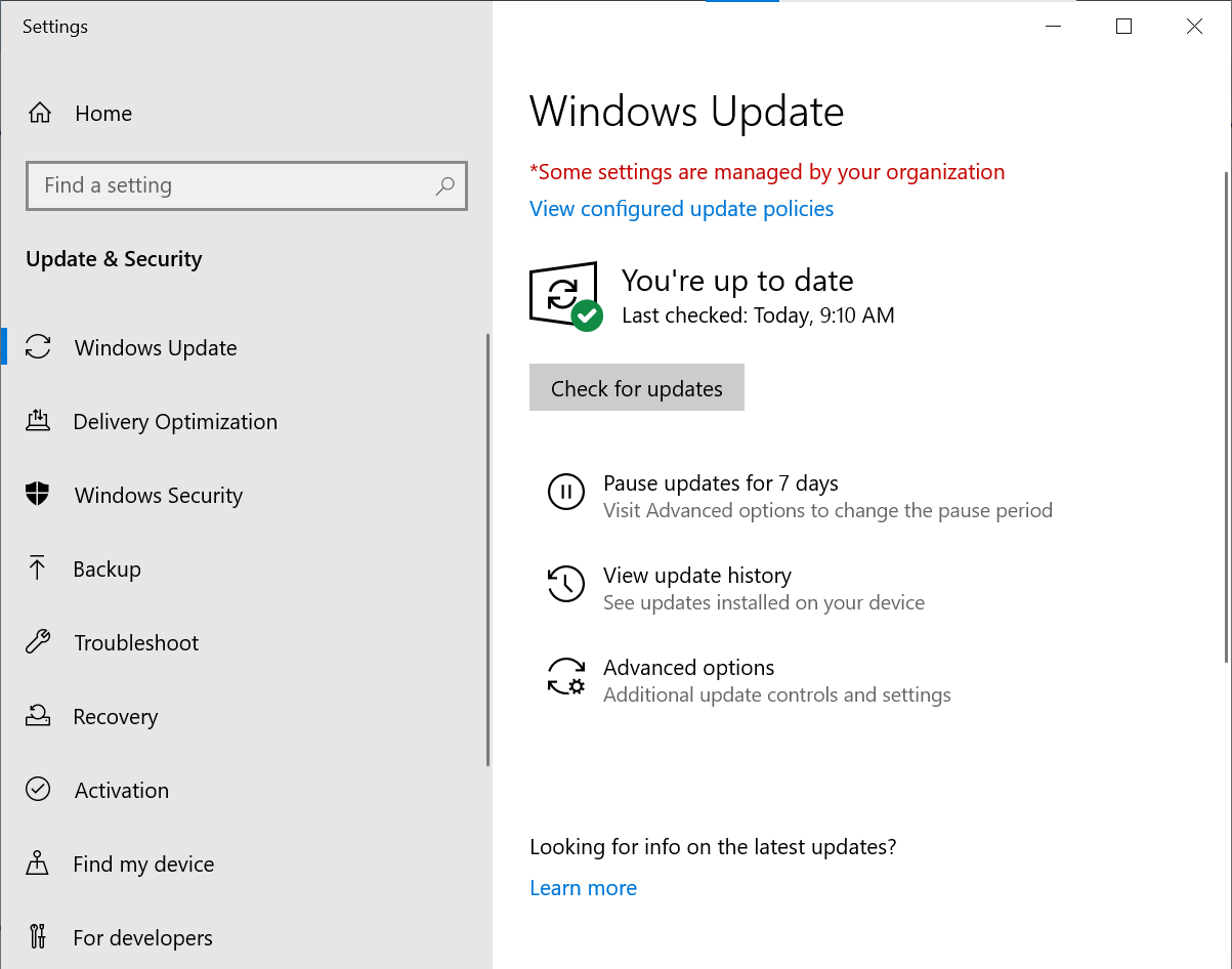 To see the available updates go to “Start” > “Settings” > “Update & Security” > “Windows Update”.