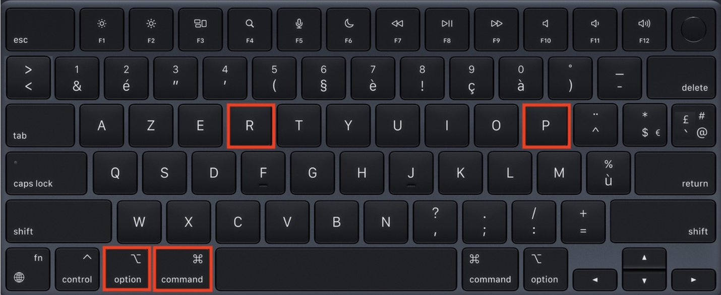 Step 3. Turn your Mac back on by pressing the power button, and immediately press and hold Option (⌥)-Command (⌘)-P-R.